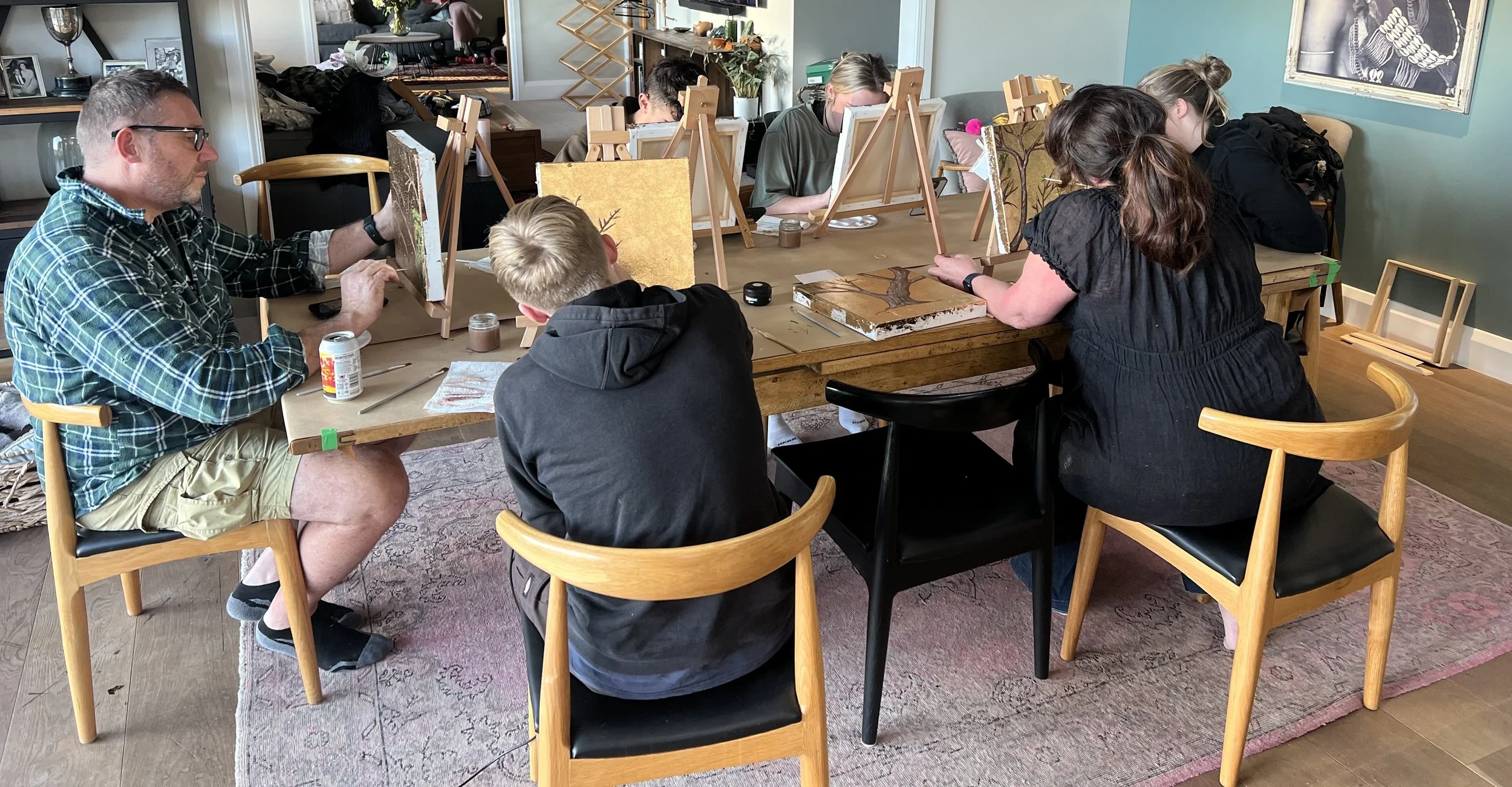 All materials provided. Available as private, in-home sessions or hosted events. The process starts with a consultation where we discuss your ideas, how many family members you have and what you want the finished art work to look like.